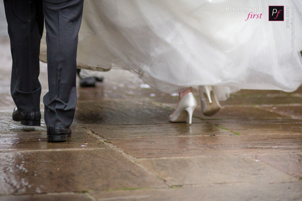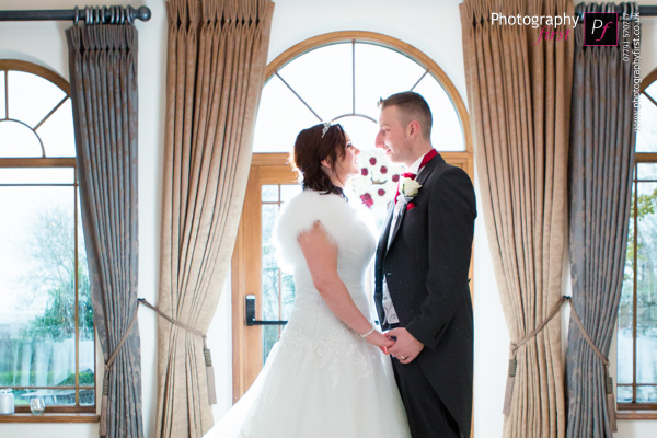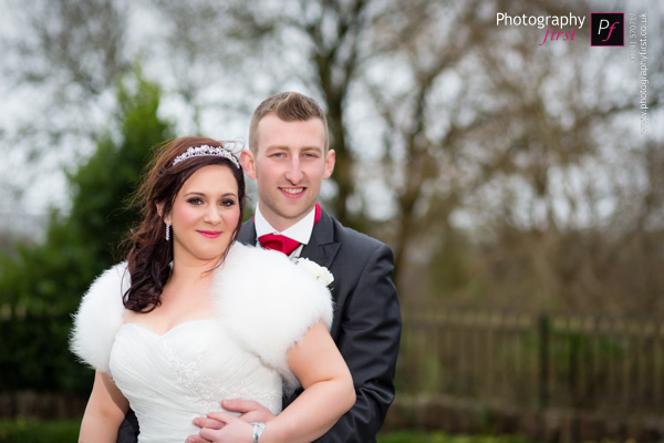 Although it was raining, it didn’t affect the wedding at all, especially when the ceremony was over, the rain had stopped for the confetti and the bride and groom portraits too! Â It was a bit wet to venture into the gardens, so the patio’d area it was… with the beautiful background, it didn’t seem as if it was a wet day all! Â This really is a gorgeous South Wales wedding venue, so once it started raining, I had to get some more portraits of this awesome couple inside, no wedding is complete without the fairylights!